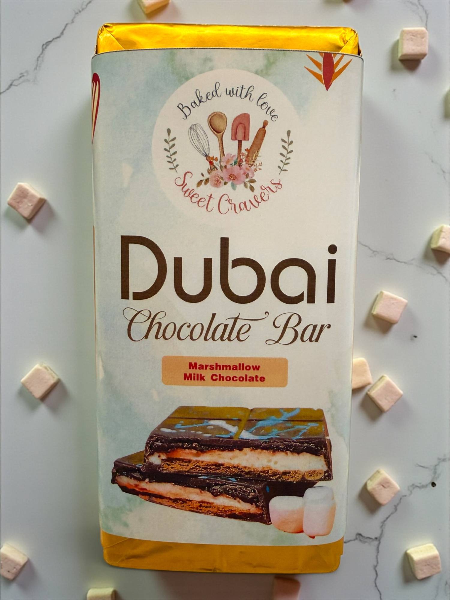 Experience pure indulgence with this luxurious milk chocolate bar inspired by Dubai’s love for rich, playful desserts. Crafted with silky-smooth milk chocolate and filled with soft, fluffy marshmallow, every bite delivers a perfect balance of creamy sweetness and melt-in-your-mouth texture.